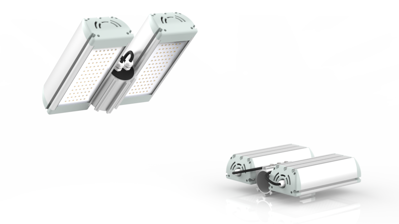 Объединенные светильники серии "Модуль PRO". "Хвосты" питания не объединены в один. Сколько модулей, столько и "хвостов". Модули могут работать независимо друг от друга. Это позволяет включать их различными фазами, а также производить замену Модулей, без демонтажа всего светильника. Опционально заказ объединения "хвостов" в один.