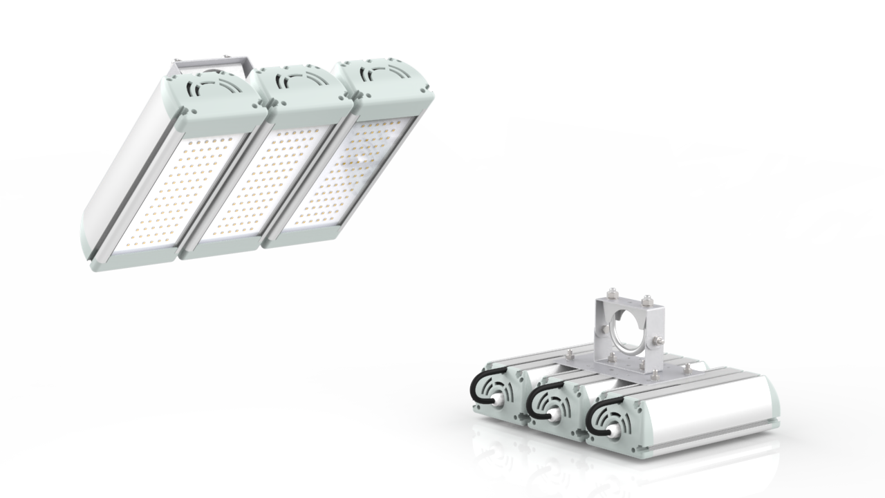 Объединенные светильники серии "Модуль PRO". "Хвосты" питания не объединены в один. Сколько модулей, столько и "хвостов". Модули могут работать независимо друг от друга. Это позволяет включать их различными фазами, а также производить замену Модулей, без демонтажа всего светильника. Опционально заказ объединения "хвостов" в один.
