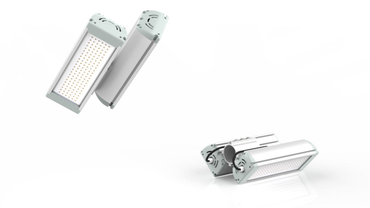 Объединенные светильники серии "Модуль PRO". "Хвосты" питания не объединены в один. Сколько модулей, столько и "хвостов". Модули могут работать независимо друг от друга. Это позволяет включать их различными фазами, а также производить замену Модулей, без демонтажа всего светильника. Опционально заказ объединения "хвостов" в один.