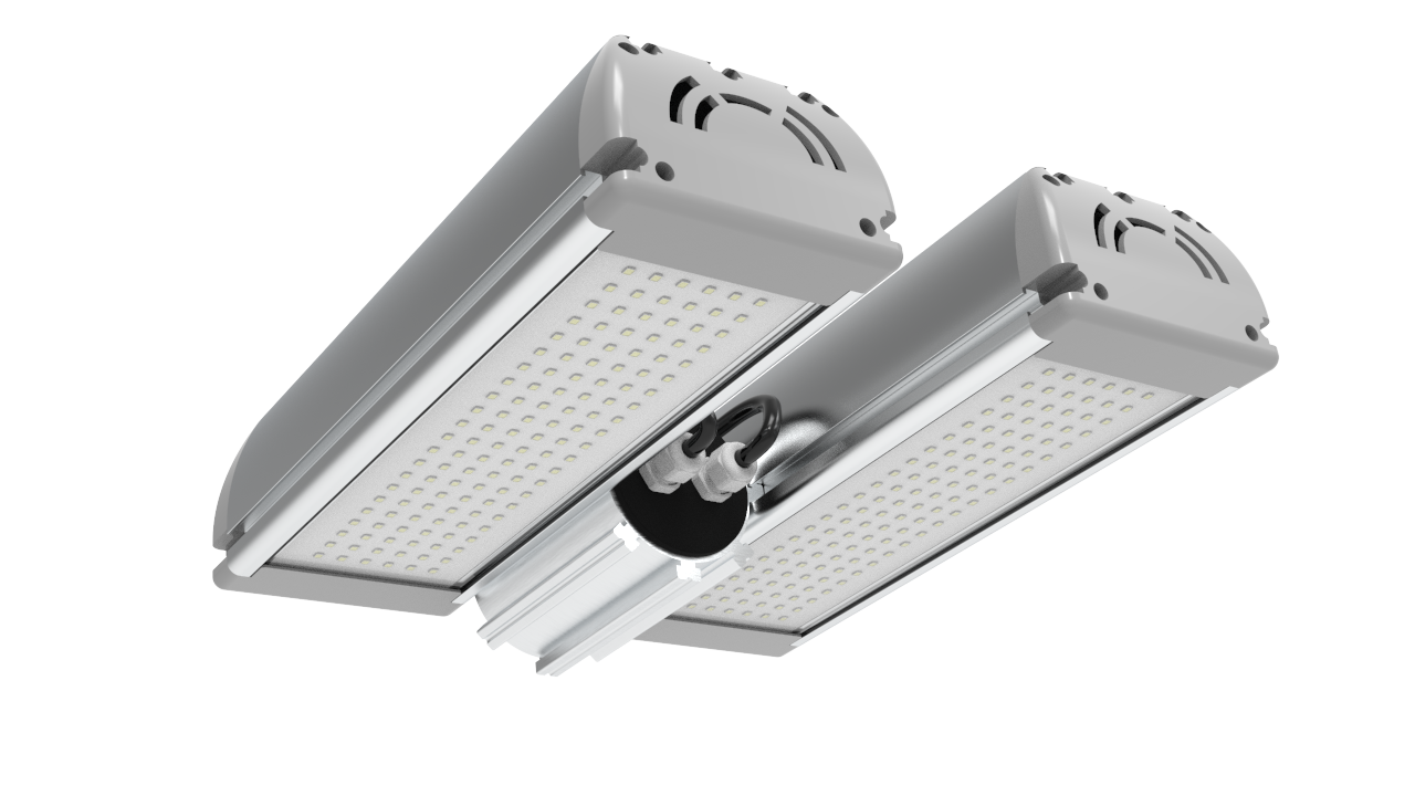Объединенные светильники серии "Модуль PRO". "Хвосты" питания не объединены в один. Сколько модулей, столько и "хвостов". Модули могут работать независимо друг от друга. Это позволяет включать их различными фазами, а также производить замену Модулей, без демонтажа всего светильника. Опционально заказ объединения "хвостов" в один.
