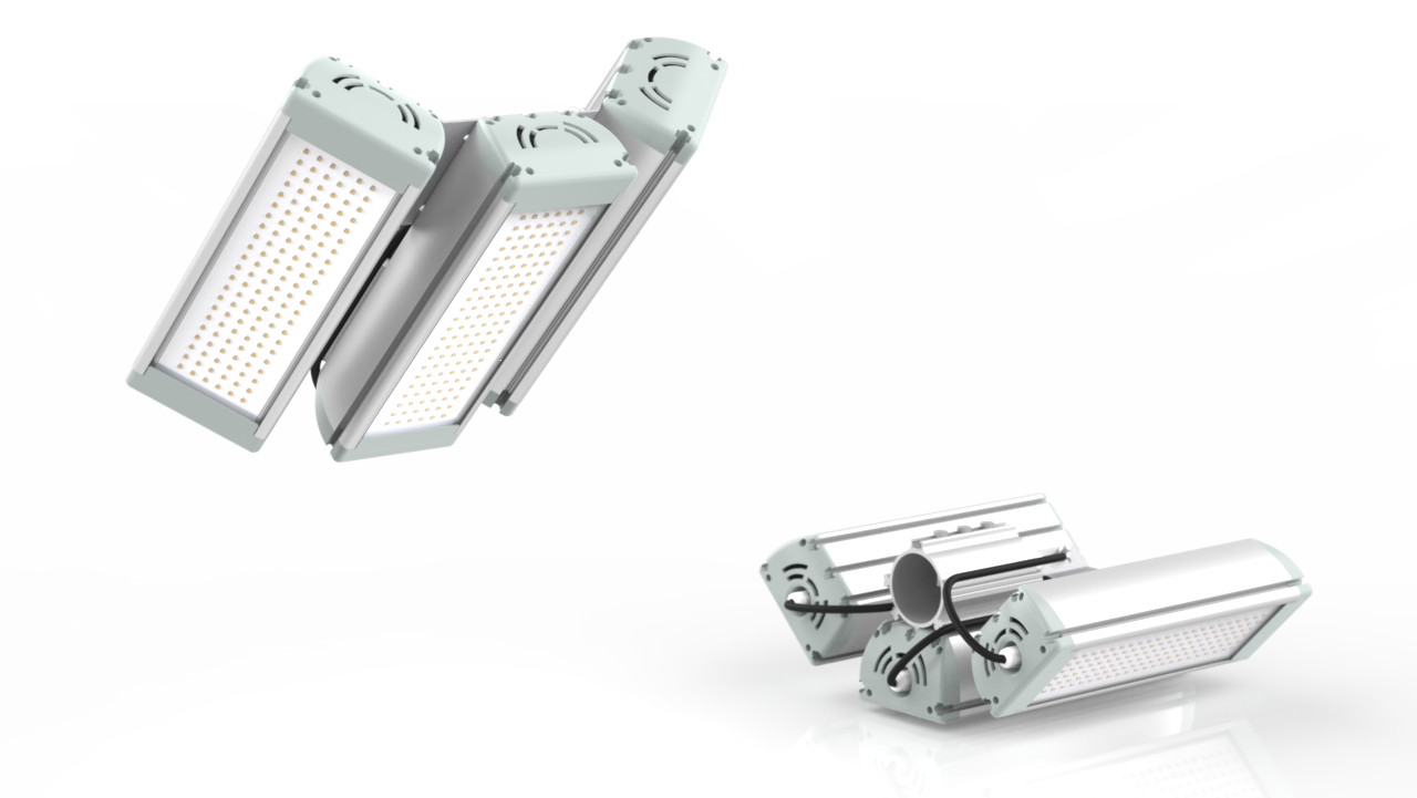 Объединенные светильники серии "Модуль PRO". "Хвосты" питания не объединены в один. Сколько модулей, столько и "хвостов". Модули могут работать независимо друг от друга. Это позволяет включать их различными фазами, а также производить замену Модулей, без демонтажа всего светильника. Опционально заказ объединения "хвостов" в один.