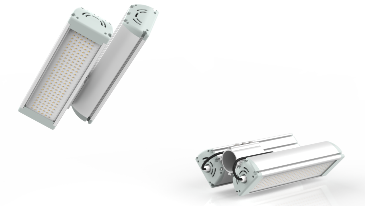 Объединенные светильники серии "Модуль PRO". "Хвосты" питания не объединены в один. Сколько модулей, столько и "хвостов". Модули могут работать независимо друг от друга. Это позволяет включать их различными фазами, а также производить замену Модулей, без демонтажа всего светильника. Опционально заказ объединения "хвостов" в один.