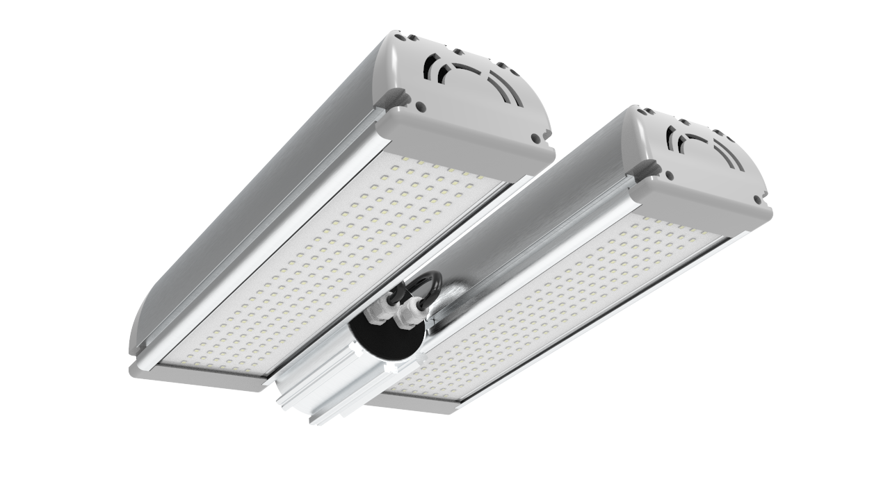 Объединенные светильники серии "Модуль PRO". "Хвосты" питания не объединены в один. Сколько модулей, столько и "хвостов". Модули могут работать независимо друг от друга. Это позволяет включать их различными фазами, а также производить замену Модулей, без демонтажа всего светильника. Опционально заказ объединения "хвостов" в один.