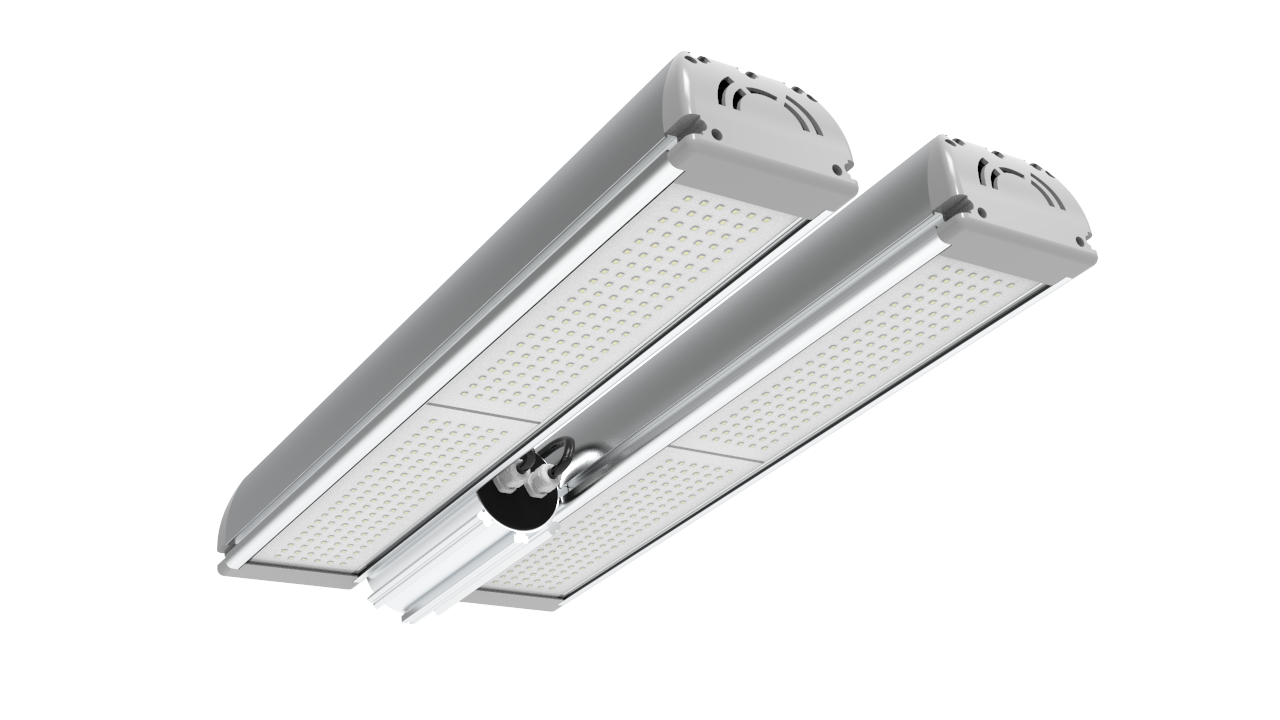 Объединенные светильники серии "Модуль PRO". "Хвосты" питания не объединены в один. Сколько модулей, столько и "хвостов". Модули могут работать независимо друг от друга. Это позволяет включать их различными фазами, а также производить замену Модулей, без демонтажа всего светильника. Опционально заказ объединения "хвостов" в один.