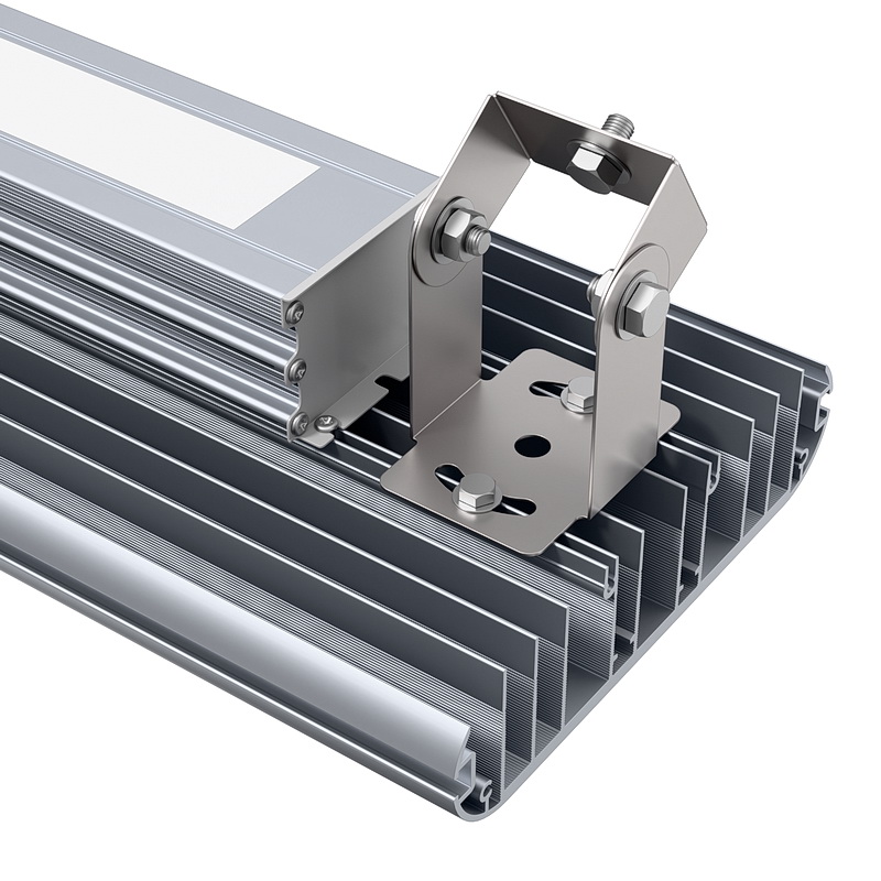 Корпус светильника изготовлен из анодированного алюминия, не подвержен коррозии. Легкое крепление с помощью рым-болтов, возможна замена на тросовые подвесы.