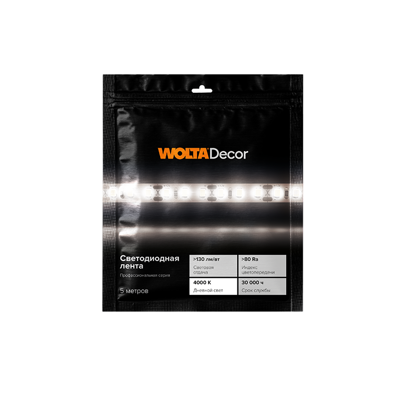 Декоративная светодиодная лента WOLTA®Decor cерии WLS представляет собой современный LED-модуль на гибкой печатной (монтажной) плате, на которой равноудалённо друг от друга расположены мощные светодиоды. Ширина ленты составляет 8-10 миллиметров (в зависимости от модели), а ее толщина со светодиодами 1-2 миллиметра. При изготовлении лента сматывается в катушку длиной 5 метров. Для ограничения подачи тока через наши светодиоды в электрическую схему WLS введены балластные сопротивления (резисторы), которые размещены на самой ленте.